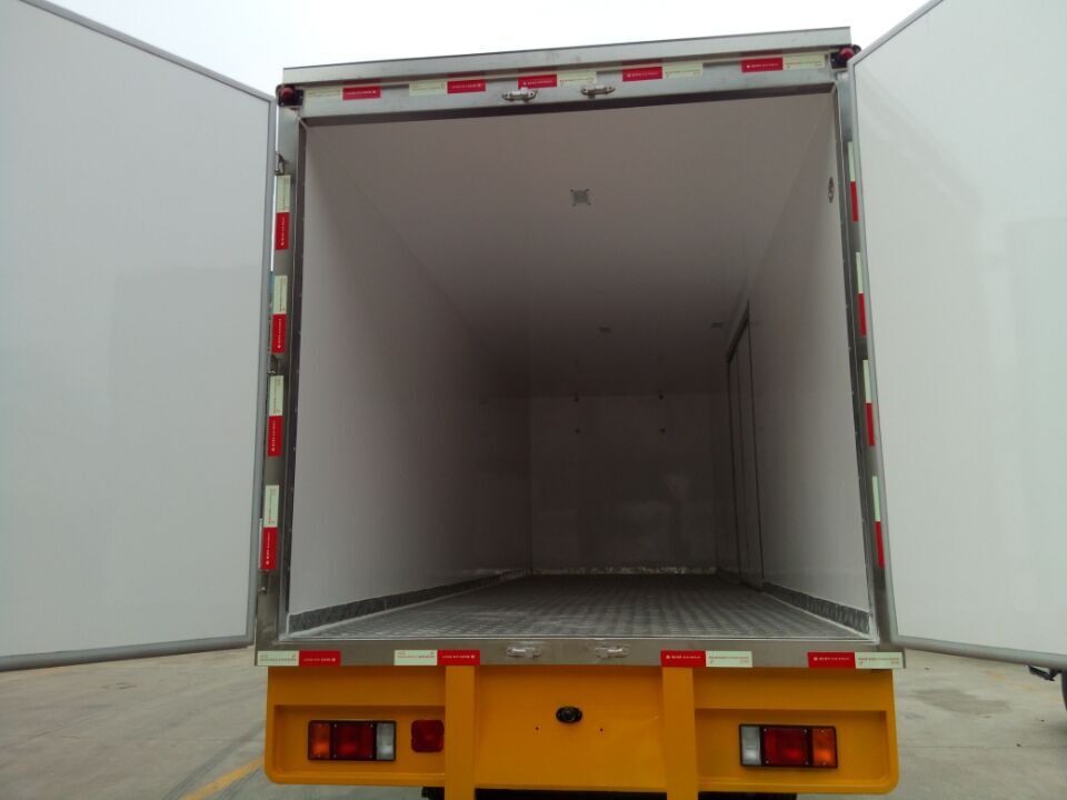 程力專用汽車股份有限公司,引進(jìn)目前國際最先進(jìn)冷藏車生產(chǎn)技術(shù)并斥巨資購置先進(jìn)的發(fā)泡成型設(shè)備和18米大型復(fù)合板材生產(chǎn)線,制造出新一代冷藏保溫車。生產(chǎn)的冷藏車廂體內(nèi)外壁板選用優(yōu)質(zhì)的玻璃鋼、不銹鋼或彩鋼板;中間保溫材料選用200px厚進(jìn)口聚氨酯擠塑板;廂體周邊鋁合金包邊;底板采用整體現(xiàn)澆玻璃鋼。采用新技術(shù)、新工藝制造的冷藏車具有保溫性能好、外型美觀、整體質(zhì)量輕、強(qiáng)度高、無滲漏等特點(diǎn)。廂板耐沖擊性好,對大氣、水和酸、堿、鹽等介質(zhì)具有良好的耐腐蝕性和抗老化性。經(jīng)過優(yōu)化設(shè)計(jì),大大降低廂底板離地面高度,增大了車廂的有效容積,車輛行駛的安全性更高。廂底板選裝通風(fēng)槽,便于冷氣流通全車,并保持廂內(nèi)溫度均衡。冷藏機(jī)組有知名的國產(chǎn)與進(jìn)口機(jī)組選擇,溫度可達(dá)深冷要求,機(jī)組具有結(jié)構(gòu)簡單、操作方便運(yùn)行可靠、能耗低制冷量大,噪聲小安裝維護(hù)方便等特點(diǎn)。