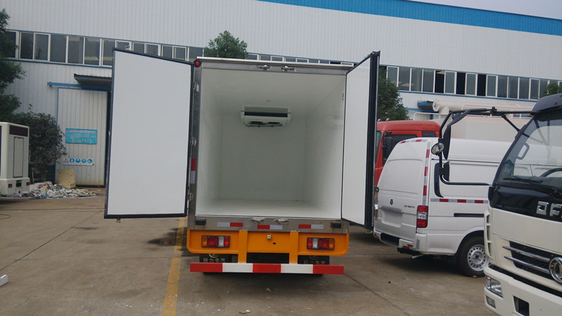 程力專用汽車股份有限公司,引進(jìn)目前國(guó)際最先進(jìn)冷藏車生產(chǎn)技術(shù)并斥巨資購(gòu)置先進(jìn)的發(fā)泡成型設(shè)備和18米大型復(fù)合板材生產(chǎn)線,制造出新一代冷藏保溫車。生產(chǎn)的冷藏車廂體內(nèi)外壁板選用優(yōu)質(zhì)的玻璃鋼、不銹鋼或彩鋼板;中間保溫材料選用200px厚進(jìn)口聚氨酯擠塑板;廂體周邊鋁合金包邊;底板采用整體現(xiàn)澆玻璃鋼。采用新技術(shù)、新工藝制造的冷藏車具有保溫性能好、外型美觀、整體質(zhì)量輕、強(qiáng)度高、無滲漏等特點(diǎn)。廂板耐沖擊性好,對(duì)大氣、水和酸、堿、鹽等介質(zhì)具有良好的耐腐蝕性和抗老化性。經(jīng)過優(yōu)化設(shè)計(jì),大大降低廂底板離地面高度,增大了車廂的有效容積,車輛行駛的安全性更高。廂底板選裝通風(fēng)槽,便于冷氣流通全車,并保持廂內(nèi)溫度均衡。冷藏機(jī)組有知名的國(guó)產(chǎn)與進(jìn)口機(jī)組選擇,溫度可達(dá)深冷要求,機(jī)組具有結(jié)構(gòu)簡(jiǎn)單、操作方便運(yùn)行可靠、能耗低制冷量大,噪聲小安裝維護(hù)方便等特點(diǎn)。
