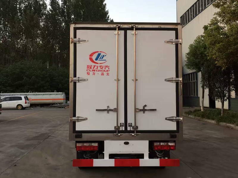 冷藏箱體尺寸長×寬×高為:4000X1880X1850,12.48立方,廂體厚度為8厘米。內(nèi)外板材采用冷藏車專用玻璃鋼,(可反射陽光),中間夾層為聚氨酯發(fā)泡隔熱材料,(防火阻燃隔熱)大型千噸壓力機(jī)壓制而成,配置箱體全為不銹鋼鎖件,不銹鋼包角,不銹鋼門框,帶有頂燈及防撞塊。我廠的冷藏保溫車保溫材料選用進(jìn)口級(jí)別XPS,吸水率≤1,導(dǎo)熱系數(shù)≤0.028W/mk,抗壓≥150Kpa,密度30~45kg/m3,使用國際上最為先進(jìn)的第五代全封閉聚氨酯板塊粘接結(jié)構(gòu),廂板表面材料有玻璃鋼、不銹鋼、鋁合金、彩鋼板等材料可供選擇,廂體成型后具有質(zhì)量輕,保溫系數(shù)高,抗沖擊力強(qiáng),無滲漏等優(yōu)點(diǎn),對(duì)大氣、水和酸、堿、鹽等介質(zhì)具有良好的耐腐蝕性和抗老化性。通過優(yōu)化設(shè)計(jì),降低了整車質(zhì)心,增大了有效容積。經(jīng)測試,整車綜合節(jié)能率,使用壽命,比一般冷藏保溫廂高1~2倍。