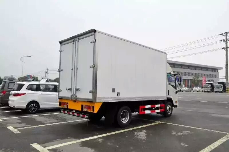 大運(yùn)國五冷藏車可以選擇單排駕駛室或排半駕駛室,單排冷藏箱尺寸 4050×2050×2200 (mm)