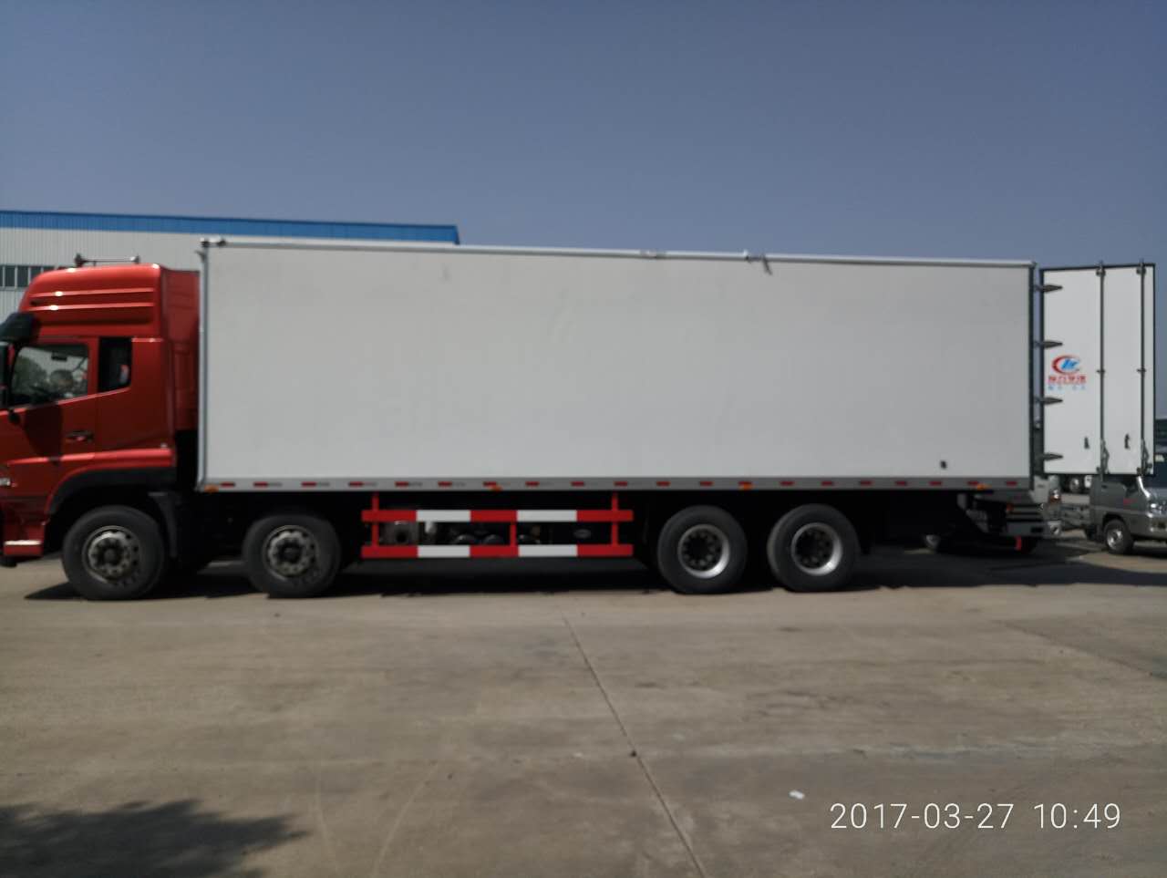 程力專用汽車股份有限公司,引進目前國際最先進冷藏車生產(chǎn)技術(shù)并斥巨資購置先進的發(fā)泡成型設(shè)備和18米大型復(fù)合板材生產(chǎn)線,制造出新一代冷藏保溫車。生產(chǎn)的冷藏車廂體內(nèi)外壁板選用優(yōu)質(zhì)的玻璃鋼、不銹鋼或彩鋼板;中間保溫材料選用200px厚進口聚氨酯擠塑板;廂體周邊鋁合金包邊;底板采用整體現(xiàn)澆玻璃鋼。采用新技術(shù)、新工藝制造的冷藏車具有保溫性能好、外型美觀、整體質(zhì)量輕、強度高、無滲漏等特點。廂板耐沖擊性好,對大氣、水和酸、堿、鹽等介質(zhì)具有良好的耐腐蝕性和抗老化性。經(jīng)過優(yōu)化設(shè)計,大大降低廂底板離地面高度,增大了車廂的有效容積,車輛行駛的安全性更高。廂底板選裝通風槽,便于冷氣流通全車,并保持廂內(nèi)溫度均衡。冷藏機組有知名的國產(chǎn)與進口機組選擇,溫度可達深冷要求,機組具有結(jié)構(gòu)簡單、操作方便運行可靠、能耗低制冷量大,噪聲小安裝維護方便等特點。