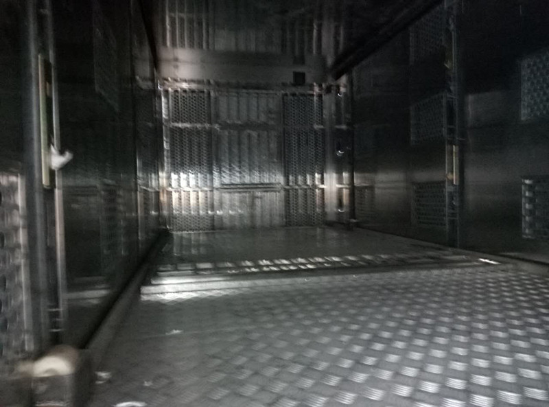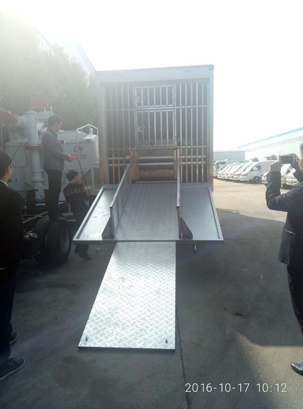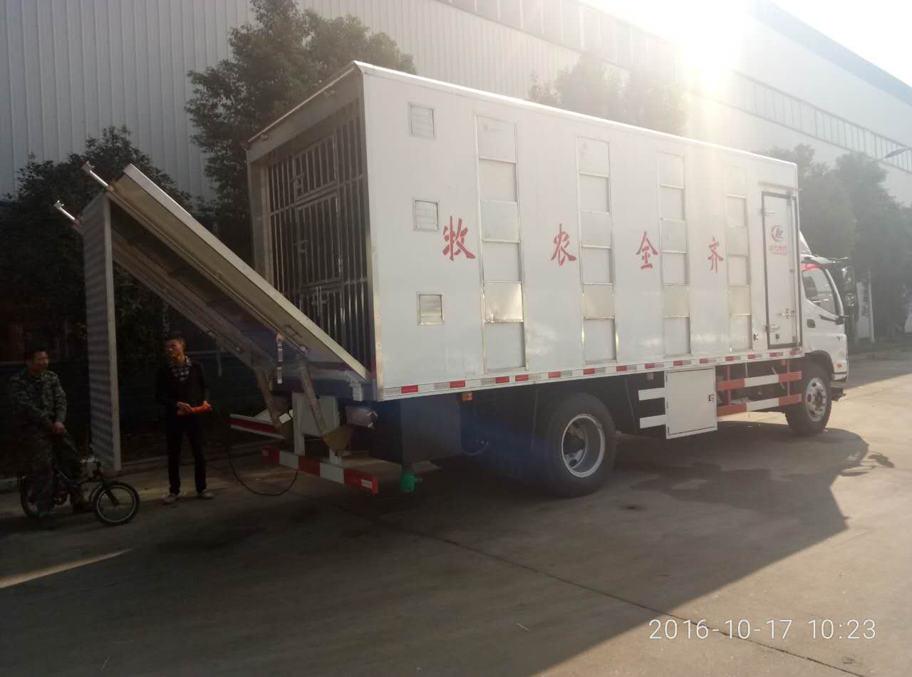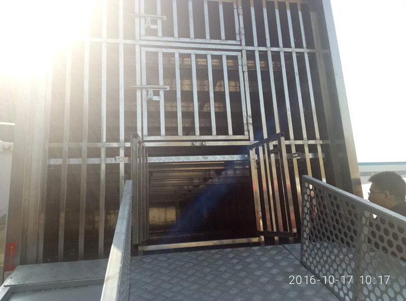 進(jìn)出通道:后門通過液壓系統(tǒng)自動展開形成仔豬進(jìn)出箱體的通道,設(shè)有護(hù)欄,方便仔豬上下.