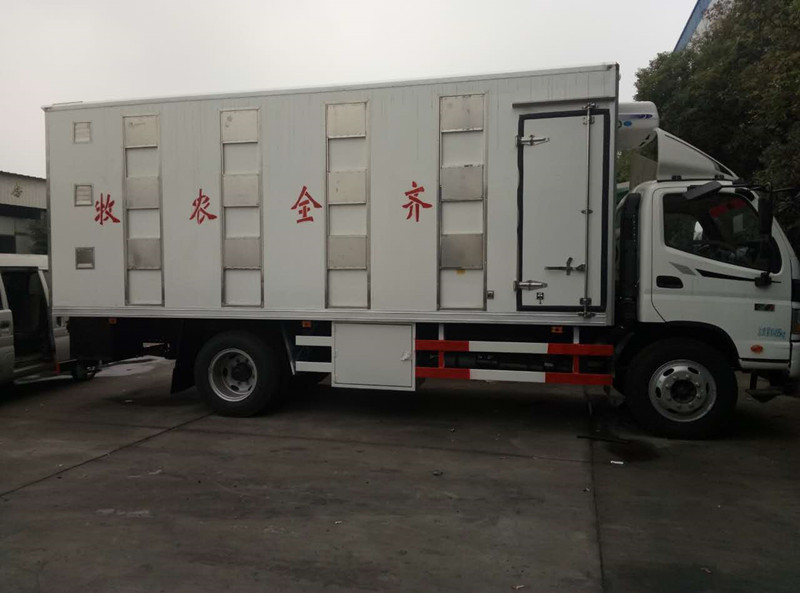 福田歐馬可豬仔運輸車改變傳統(tǒng)的貨車運輸方式,改為廂式車運輸,兩面廂板上分別裝有18個通風(fēng)口,可以根據(jù)車速的不同調(diào)整通風(fēng)口的開合角度,打比方說,咱們現(xiàn)在上高速,車速比較快,那么可以把通風(fēng)口開小一點,這樣不吹豬,當(dāng)咱們在城市里走,車速比較慢的時候,可以把通風(fēng)口開大一點,讓空氣流通得更快。每層車廂還設(shè)置有兩個換氣扇,可以及時把車內(nèi)渾濁的空氣排出去,誰說豬喜歡聞臭味?豬也討厭臭味,它只是沒辦法,它不會說嘛。我們做過的實驗證明,保持空氣流通、空氣清新,是長途運輸豬仔的關(guān)鍵,這樣環(huán)境下運輸?shù)呢i仔活潑好動,開心得很!
