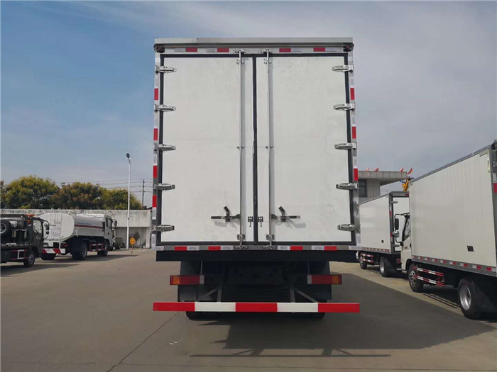 底盤技術(shù)參數(shù) 程力專用汽車股份有限公司,引進(jìn)目前國際最先進(jìn)冷藏車生產(chǎn)技術(shù)并斥巨資購置先進(jìn)的發(fā)泡成型設(shè)備和18米大型復(fù)合板材生產(chǎn)線,制造出新一代冷藏保溫車。生產(chǎn)的冷藏車廂體內(nèi)外壁板選用優(yōu)質(zhì)的玻璃鋼、不銹鋼或彩鋼板;中間保溫材料選用200px厚進(jìn)口聚氨酯擠塑板;廂體周邊鋁合金包邊;底板采用整體現(xiàn)澆玻璃鋼。采用新技術(shù)、新工藝制造的冷藏車具有保溫性能好、外型美觀、整體質(zhì)量輕、強(qiáng)度高、無滲漏等特點(diǎn)。廂板耐沖擊性好,對大氣、水和酸、堿、鹽等介質(zhì)具有良好的耐腐蝕性和抗老化性。經(jīng)過優(yōu)化設(shè)計(jì),大大降低廂底板離地面高度,增大了車廂的有效容積,車輛行駛的安全性更高。廂底板選裝通風(fēng)槽,便于冷氣流通全車,并保持廂內(nèi)溫度均衡。冷藏機(jī)組有知名的國產(chǎn)與進(jìn)口機(jī)組選擇,溫度可達(dá)深冷要求,機(jī)組具有結(jié)構(gòu)簡單、操作方便運(yùn)行可靠、能耗低制冷量大,噪聲小安裝維護(hù)方便等特點(diǎn)。 ▲廂體結(jié)構(gòu)緊湊、牢固可靠、絕熱性好。 ▲廂體材料符合食品運(yùn)輸衛(wèi)生要求。 ▲后雙門機(jī)構(gòu)(門鎖、手柄、拉桿、五金鉸鏈、掛鉤等)選用國際廂式車通用標(biāo)準(zhǔn)件。 ▲后門周邊采用優(yōu)質(zhì)蒸氣熟化密封條,使用壽命長、密封性能好,開關(guān)門輕松,方便。