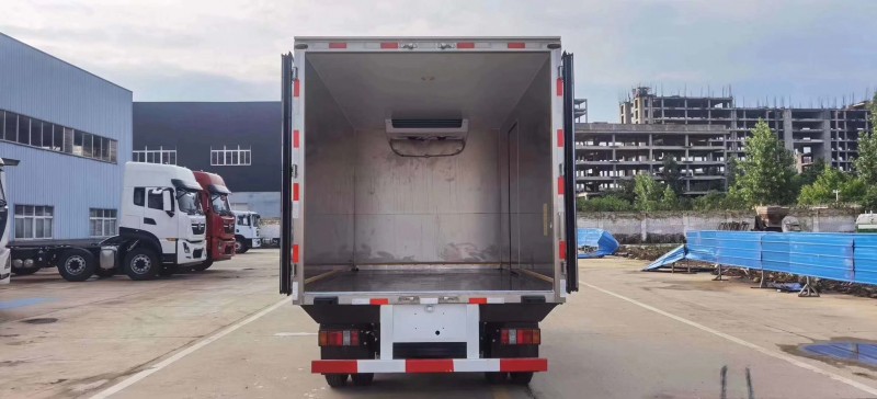 江鈴順達(dá)寬體國(guó)六4米2冷藏車標(biāo)準(zhǔn)配置:冷藏箱體尺寸長(zhǎng)×寬×高為:4100×1980×1840,15立方,廂體厚度為8厘米。內(nèi)外板材采用冷藏車專用玻璃鋼,(可反射陽(yáng)光),(防火阻燃隔熱)配置箱體全為不銹鋼鎖件,不銹鋼包角,不銹鋼門(mén)框,帶有頂燈及防撞塊,廂板表面材料有玻璃鋼、不銹鋼、鋁合金、彩鋼板等材料可供選擇,廂體成型后具有質(zhì)量輕,保溫系數(shù)高,抗沖擊力強(qiáng),無(wú)滲漏等優(yōu)點(diǎn),對(duì)大氣、水和酸、堿、鹽等介質(zhì)具有良好的耐腐蝕性和抗老化性 。廂體內(nèi)部可選裝地板通風(fēng)槽,溫濕度記錄儀,側(cè)門(mén),肉鉤導(dǎo)軌,欄貨槽等!制冷設(shè)備可選裝國(guó)產(chǎn)和進(jìn)口制冷機(jī)組,選裝保鮮-5度,冷凍-15度制冷機(jī)組。