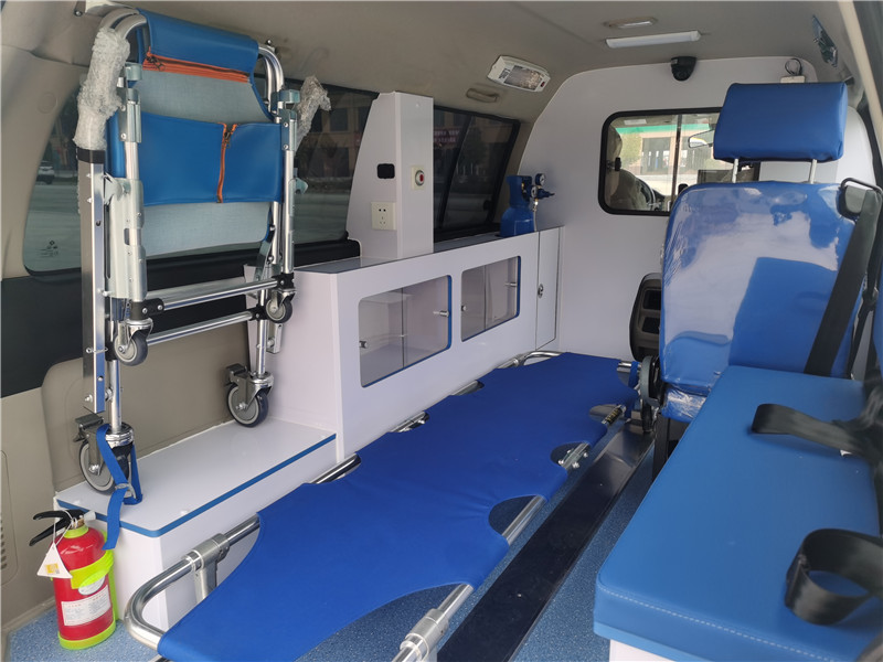 帶可推拉玻璃窗戶,1.醫(yī)療艙隔斷后部安裝沃克板材醫(yī)療器,1. 醫(yī)療艙右側(cè)正向安裝獨立靠背座椅 2. 醫(yī)療艙右側(cè) 2 人長條軟包座椅及安全帶 3. 醫(yī)療艙左側(cè)安裝翻轉(zhuǎn)式長條座椅,全車安裝隱藏式安全預埋件,采用藍色環(huán)保型耐磨、防滑醫(yī)療地板及墊層,配備折疊擔架,滅火器,醫(yī)用垃圾桶等。
