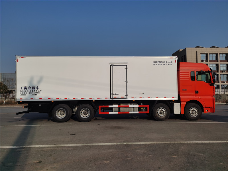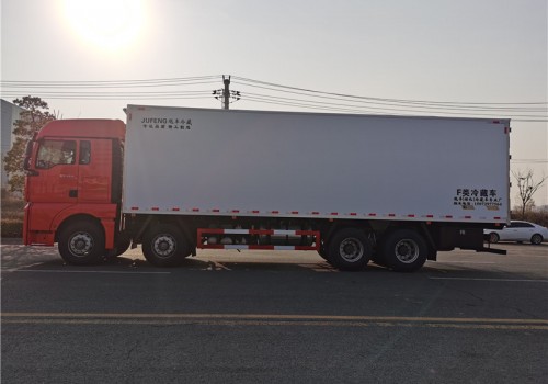 汕德卡自動擋480馬力前四后八9米6冷藏車上裝配置:廂體內(nèi)尺寸9400x2450X2450(mm):斷橋隔熱工藝、整體結(jié)構(gòu)框架;內(nèi)外玻璃鋼板夾聚氨酯保溫層真空復(fù)合而成,底板為玻璃鋼板,箱體副駕駛邊開側(cè)門,地板加裝加厚矩形通風(fēng)槽,前后封口,龍骨斷橋為松木復(fù)合板;木質(zhì)隔溫結(jié)構(gòu);廂體厚度為8cm;不銹鋼包角;最新款鋁合金包邊型材;廂體內(nèi)部安裝2個LED照明燈;后門框為2mm厚不銹鋼材質(zhì);門框密封條為橡膠材質(zhì);加厚型不銹鋼鉸鏈及鎖件;箱體內(nèi)部加裝5排肉鉤導(dǎo)軌,地板加裝加厚鋁合金通風(fēng)槽,200不不銹鋼肉鉤,安裝鄭州凱雪1090非獨立制冷機(jī)組。最低溫度可達(dá)-18度。