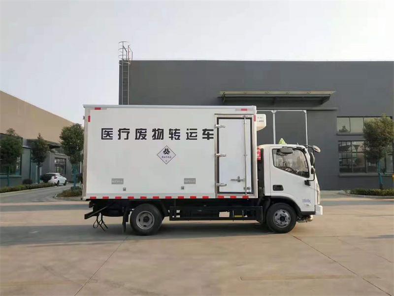 福田奧鈴國六藍(lán)牌4米2醫(yī)療廢物轉(zhuǎn)運車上裝配置:廂體尺寸:4060x2100X2100(mm),廂體采用內(nèi)不銹鋼外玻璃鋼板制作,中間8厘米厚保溫板,內(nèi)裝自噴霧裝置和紫外線滅菌燈,廂內(nèi)兩側(cè)加裝固定貨物的防撞板,廂體右前側(cè)選開單側(cè)門,加裝廢液收集罐,鋁合金包邊,不銹鋼門框,鎖件。制冷設(shè)備可安裝國產(chǎn)-5度制冷機組。