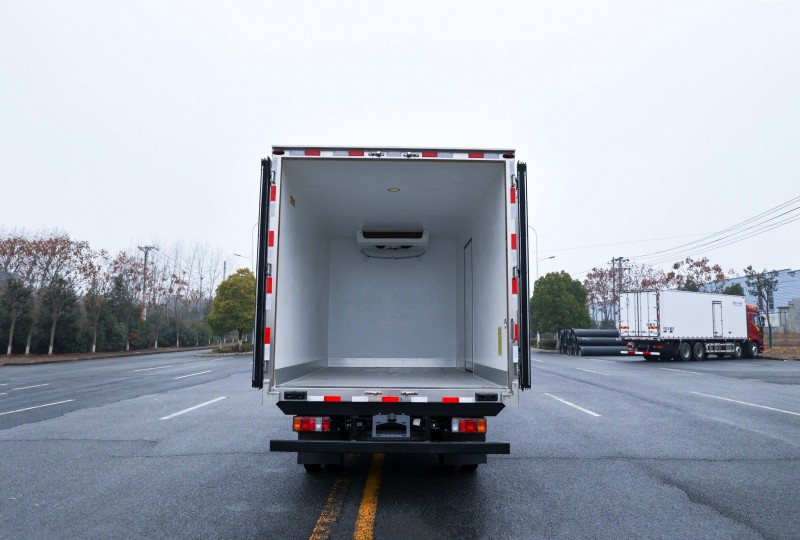 五十鈴M100藍(lán)牌4米2冷藏車專用配置:冷藏箱體配置:《斷橋隔溫工藝、整體結(jié)構(gòu)框架》;內(nèi)外面料為2mm新款玻璃鋼;側(cè)板+頂板:龍骨斷橋為松木復(fù)合板;木質(zhì)隔溫結(jié)構(gòu);夾心為聚苯乙烯保溫材料;全密封雙組合聚氨酯膠粘連;廂體厚度為8cm;鍍鋅包角;最新款鋁合金包邊型材;型材局部厚度為4mm(鋼制鉚釘加固);廂體內(nèi)部采用1個LED照明燈及廂體示寬燈;后門框為2mm厚不銹鋼材質(zhì);門框密封條為三元乙丙橡膠材質(zhì);加厚型不銹鋼合頁及鎖件;副梁為Q700車用大梁鋼;15mm厚大梁墊皮;加裝防撞膠塊;不銹鋼門鎖件,配后雙開門。底板為塑鋼花紋板,單側(cè)門。