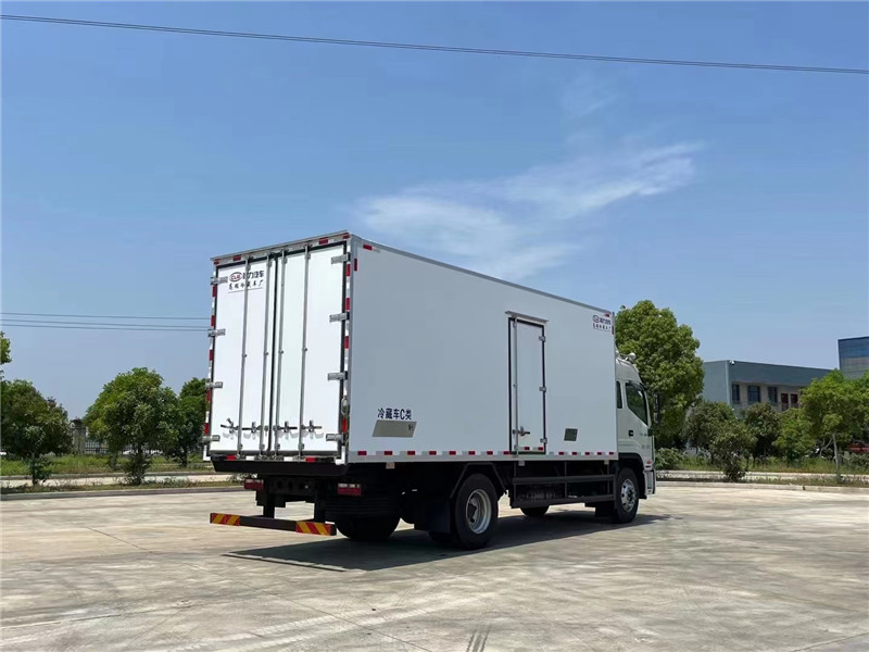 后門框?yàn)?mm厚不銹鋼材質(zhì);門框密封條為三元乙丙橡膠材質(zhì);加厚型不銹鋼合頁及鎖件;副梁為Q700車用大梁鋼;15mm厚大梁墊皮;加裝防撞膠塊;不銹鋼門鎖件,配后雙開門。底板為玻璃鋼,單側(cè)門。箱體內(nèi)部選裝地板通風(fēng)槽,肉鉤導(dǎo)軌,溫濕度記錄儀,等專用設(shè)備,制冷設(shè)備可選裝國產(chǎn)凱雪1080超薄制冷機(jī)組,選裝進(jìn)口開利,冷王獨(dú)立制冷機(jī)組。