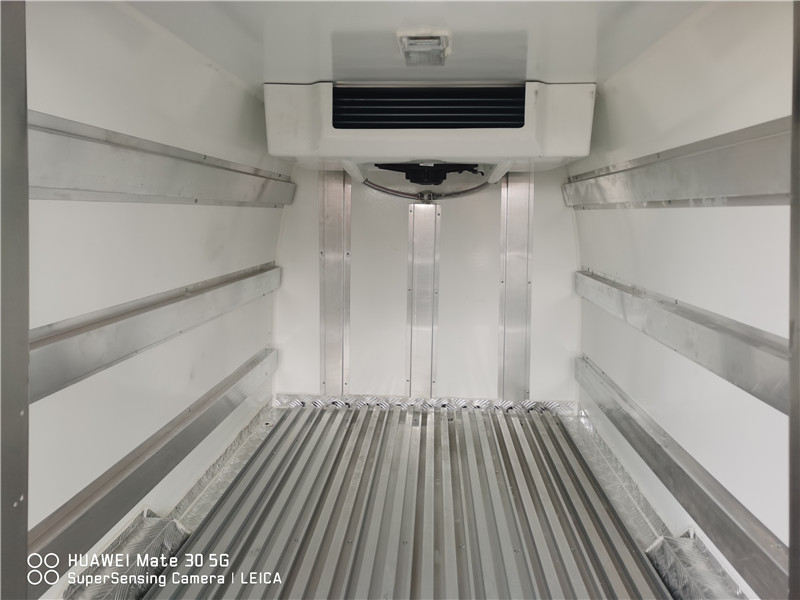 長安星五藥品面包冷藏車車上裝配置:內(nèi)膽圓弧式廂體,箱體內(nèi)尺寸1740*1200*1080(mm),廂體采用真空吸附、液壓吸附一體成型生產(chǎn)線制造,三明治復(fù)合粘接,保溫性能達(dá)到國家A級標(biāo)準(zhǔn)。廂板材質(zhì):內(nèi)外壁板選用國內(nèi)優(yōu)質(zhì)玻璃鋼(不吸光、隔熱性好、硬度強、抗氧化);中間保溫層為XPS擠塑聚笨板。地板采用鋁花紋板,門邊條采用迷宮式橡膠密封條。廂體配件:不銹鋼門鎖鉸鏈,不銹鋼門框及合頁,廂體內(nèi)節(jié)能LED照明燈。箱體內(nèi)部加裝5面通風(fēng)槽,安裝溫濕度記錄儀(帶打印功能),安裝國產(chǎn)保險制冷機組,最低溫度可達(dá)-5度。