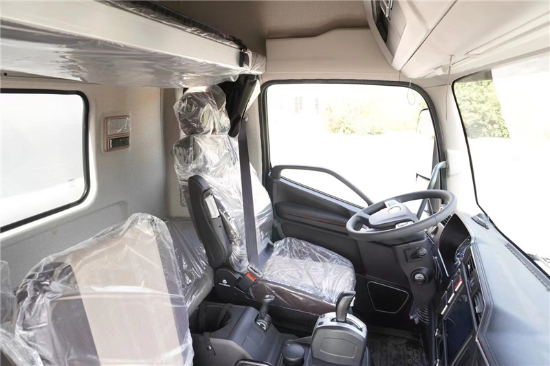 駕駛室四幅式多功能方向盤兩側(cè)的多功能按鍵具備定速巡航、藍牙電話接聽等功能。儀表盤采用了高分辨率液晶屏,方便駕駛員時刻觀察車門開關(guān)、油耗、氣壓等車輛基本信息。提升駕乘舒適性的同時,頂置儲物空間也得到了優(yōu)化,隔斷式設(shè)計可以用來存放換洗衣物。遮陽板采用電動提拉設(shè)計,卡友行車時可以根據(jù)室外光線變化隨意調(diào)整,在駐車休息時還能保證私密性。標(biāo)配容量600L鋁合金油箱,綜合高速工況、車貨總質(zhì)量18噸的情況下,百公里平均油耗22L,整體續(xù)航能力超過2500公里。