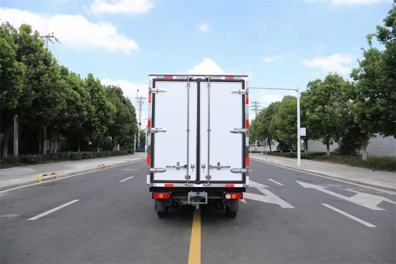 飛碟純電動2米4冷藏車專用配置:斷橋隔溫工藝、整體結構框架,內外面料為3mm新款啞光玻璃鋼;側板+頂板:龍骨斷橋為松木復合板;木質隔溫結構;夾心為聚苯乙烯保溫材料;全密封雙組合聚氨酯膠粘連;廂體厚度為8cm;鍍鋅包角;最新款鋁合金包邊型材;廂體內部采用2個LED照明燈及廂體示寬燈;后門框為2mm厚不銹鋼材質;門框密封條為三元乙丙橡膠材質;加厚型不銹鋼合頁及鎖件;15mm厚大梁墊皮;加裝防撞膠塊;不銹鋼門鎖件,帶側門,配后雙開門。安裝電動冷機,最低溫度可達-15度,可根據需求進行調節(jié)。