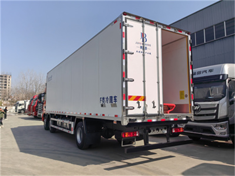 汕德卡G5S小三軸9米6冷藏車專用配置:箱體內(nèi)尺寸:9500×2440×2450(mm),外面料為新款啞光加厚玻璃鋼;夾心為高密度保溫材料;全密封雙組合聚氨酯膠粘連/榫卯合廂;整體框架式骨架;廂體保溫板厚度為8cm;鍍鋅包角;鋁合金包邊(鋼制密封鉚釘加固);廂體內(nèi)部采用LED照明燈及廂體示寬燈;后門框為加厚不銹鋼門飾;密封條為三元乙丙橡膠黑色密封條(新款5葉片帶鋁合金壓條)后門+側(cè)門為全包圍密封條;側(cè)門框為絕熱PVC+加厚不銹鋼材質(zhì);廂體內(nèi)前端加裝2個排水孔;2個防撞膠塊;1個門把手;副梁整體為輕量化高強鋼;壓板+U型栓+橡膠鋼絲墊皮+護網(wǎng)+擋泥板+3M反光膠板為標準件;