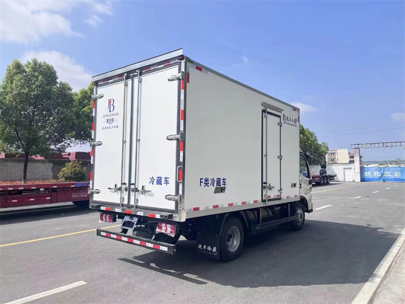 江淮駿鈴藍牌天然氣冷藏車專用配置:廂體內(nèi)尺寸: 4018*2100*2100(mm),斷橋隔溫工藝、整體結(jié)構(gòu)框架,內(nèi)外面料為3mm新款啞光玻璃鋼;側(cè)板+頂板:龍骨斷橋為松木復(fù)合板;木質(zhì)隔溫結(jié)構(gòu);夾心為聚苯乙烯保溫材料;全密封雙組合聚氨酯膠粘連;廂體厚度為8cm;鍍鋅包角;最新款鋁合金包邊型材;廂體內(nèi)部采用2個LED照明燈及廂體示寬燈;后門框為2mm厚不銹鋼材質(zhì);門框密封條為三元乙丙橡膠材質(zhì);加厚型不銹鋼合頁及鎖件;15mm厚大梁墊皮;加裝防撞膠塊;不銹鋼門鎖件,帶側(cè)門,配后雙開門。