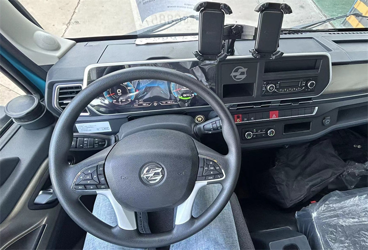 東風華神純電動4米2綠牌冷藏車駕駛室采用全新設計,科技感滿滿,屏幕采用全液晶多信息顯示儀表,還能根據(jù)需求增加一個雙聯(lián)屏,手機遠聯(lián)。觸碰式一鍵啟動開關(guān)、自主研發(fā)的高端商用車懷式自動擋,還有一個電子剎車AUTO HOLD,這在傳統(tǒng)輕卡里是非常少見的,制動更安全。四項調(diào)節(jié)多功能方向盤加重力調(diào)節(jié)減震座椅,行業(yè)內(nèi)首款平鋪式三人座椅,運輸期間休息更便利,更舒適。