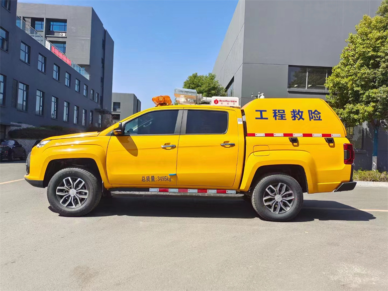 江鈴電動皮卡工程救險車是一款新能源,上綠牌的皮卡救險車,適用于一線城市的專用救援皮卡車輛,車輛裝備有工程作業(yè)所需的繞線盤、發(fā)電機組、反光路錐等),用于救險作業(yè).下面來看看這款江鈴電動皮卡救險車的配置和特點。