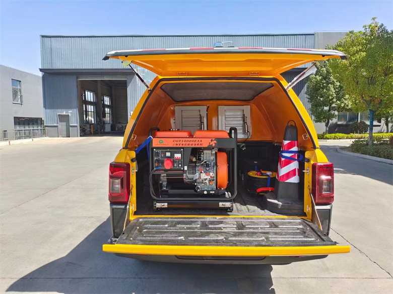 江鈴電動皮卡工程救險車標準配置:江鈴電動皮卡工程救險車車廂內(nèi)配備無刷發(fā)電機組,機組功率30KW,能滿足水泵全負荷長時間連續(xù)安全運行,額定頻率50HZ,額電壓220/400V。調速方式:電子調速、啟動電瓶,電瓶總閘。發(fā)電機組的底座油箱容積能保證發(fā)電機組全負荷運行8小時所用,安裝位置合理方便維護人員日常加油??刂葡到y(tǒng)可現(xiàn)實水溫、油壓、轉速、頻率,各項電壓、電流、功率等均可實現(xiàn)一鍵智能化,操作方便。