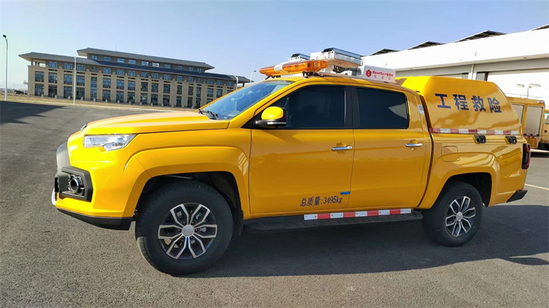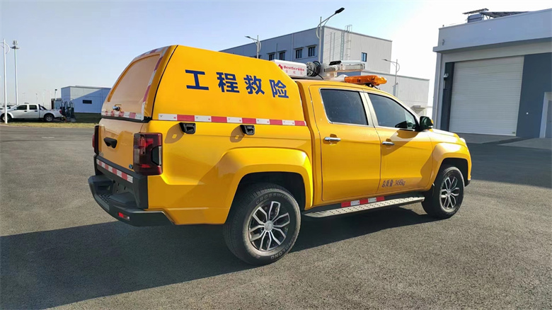 江鈴電動皮卡工程救險車車輛配置:江鈴域虎EV純電動雙排皮卡,車身顏色為工程黃,浙江方正120KW永磁同步電機/,3085軸距,磷酸鐵鋰電池,續(xù)航里程360km,快充只需0.75小時,最高時速 100km/h,自動擋變速箱,駕駛室?guī)г瓘S空調,方向助力,ABS,電動玻璃,中控門鎖,遙控鑰匙,可調節(jié)大燈,行車記錄儀,倒車影像等。