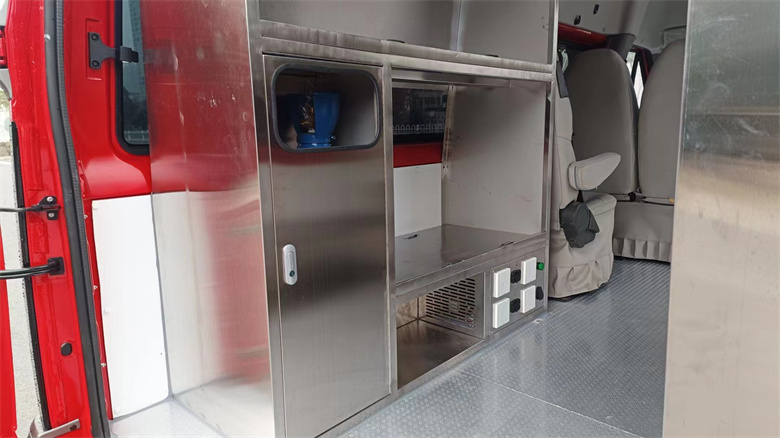 ,12V電源端口2個,柜體系統(tǒng),中隔斷帶推拉窗 定制,后艙左邊4層不銹鋼設(shè)備架,設(shè)備柜內(nèi)鋪設(shè),減震,設(shè)備架固定拉環(huán)及綁帶,后艙右邊不銹鋼工具箱帶軟包條形座墊 1套