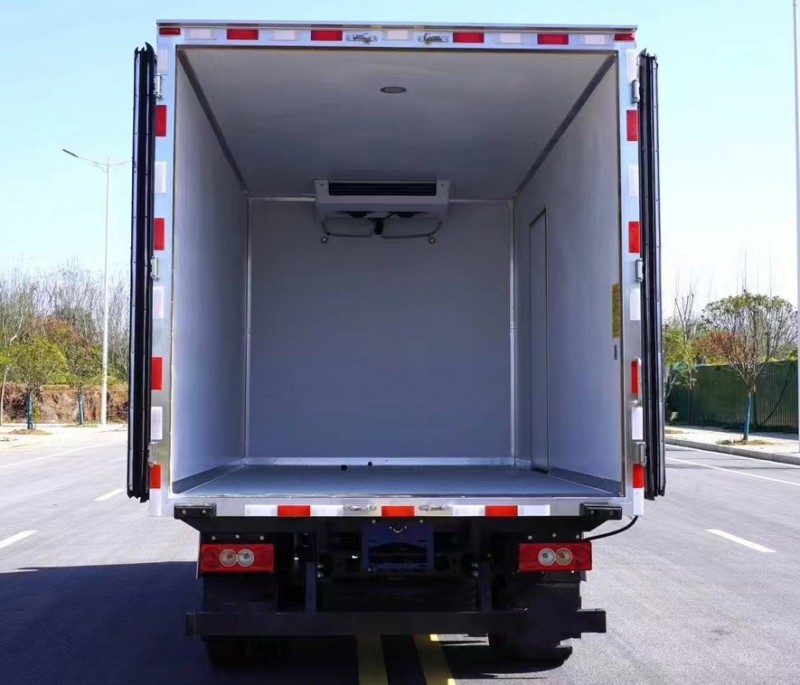 廂體采用真空吸附、液壓吸附一體成型生產(chǎn)線制造,三明治復合粘接,箱體內(nèi)部選裝地板通風槽,副駕駛邊選裝單側門,對開雙側門,頂部選裝運輸鮮肉運輸?shù)娜忏^導軌,用于牛羊肉冷鏈運輸??蛇x裝用于藥品,疫苗運輸?shù)奈迕嫱L槽,溫濕度記錄儀等專用設備。制冷設備可選裝國產(chǎn)颶豐,凱利-15度冷凍制冷機組,可選裝進口開利,冷王冷凍制冷機組,最低溫度可達-18噸,可根據(jù)運輸貨物要求進行溫度調(diào)節(jié)。