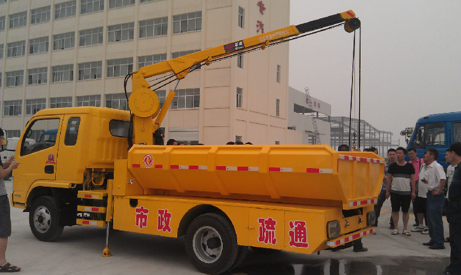 泥抓斗車是用于清理城市下水道沙井中污泥的專用車輛,采用國三標準躍進、慶鈴和國四福田歐馬可三種底盤加裝隨車起重機、污泥廂、工具箱、水箱等改裝而成。該車配備專用污泥抓斗,工作時,可方便地從下水道中抓取污泥,放到車上的污泥廂內,然后轉運送到污泥處理地點。具有自卸功能的污泥車廂能方便地將污泥倒下,完成清理及轉運工作,工作過程中路面始終保持清潔。