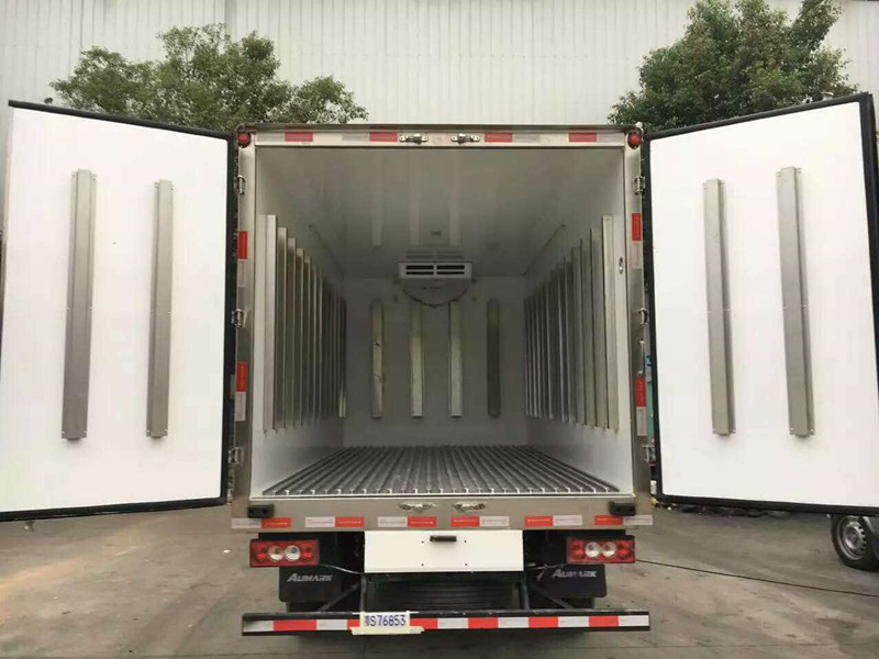 1、冷藏車的T字槽安裝的時候最多就是能夠安裝在五面。在使用其凹槽的設(shè)計方式能夠保障了冷藏車的保溫廂體中冷氣的流暢,更好的保證了運輸物品的冷凍,以及保障了廂體中的溫度均衡,裝置得又通風(fēng)槽的車廂中在全部裝滿的情況下也不會擔(dān)心到冷氣的不夠流暢。