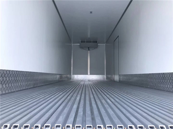 箱體尺寸長×寬×高為:9500×2420×2500約56.5立方,廂體采用程力晶龍新工藝制作。冷藏廂體內(nèi)外板材采用冷藏車專用玻璃鋼,(可反射陽光),中間夾層為8CM聚氨酯發(fā)泡隔熱材料,(防火阻燃隔熱),千噸壓機(jī)廂板生產(chǎn)線壓制而成,配置箱體全為不銹鋼鎖件,不銹鋼包角,不銹鋼門框,帶有頂燈及防撞塊。廂體底部為玻璃鋼板,加裝鋁合金材質(zhì)的通風(fēng)槽。我廠的冷藏保溫車保溫材料選用進(jìn)口級別XPS,吸水率≤1,導(dǎo)熱系數(shù)≤0.028W/mk,抗壓≥150Kpa,密度30~45kg/m3,使用國際上最為先進(jìn)的第五代全封閉聚氨酯板塊粘接結(jié)構(gòu),廂板表面材料有玻璃鋼、不銹鋼、鋁合金、彩鋼板等材料可供選擇,廂體成型后具有質(zhì)量輕,保溫系數(shù)高,抗沖擊力強(qiáng),無滲漏等優(yōu)點(diǎn),對大氣、水和酸、堿、鹽等介質(zhì)具有良好的耐腐蝕性和抗老化性 。通過優(yōu)化設(shè)計,降低了整車質(zhì)心,增大了有效容積。經(jīng)測試,整車綜合節(jié)能率,使用壽命,比一般冷藏保溫廂高1~2倍。