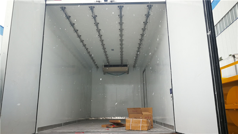 歐馬可S5新款5米9豬白條肉掛冷藏車標(biāo)準(zhǔn)配置:廂體尺寸5900×2450×2500約363立方。內(nèi)外板材采用冷藏車專用玻璃鋼,(可反射陽光),中間夾層為8CM聚氨酯發(fā)泡隔熱材料,(防火阻燃隔熱)真空復(fù)合粘接而成,配置箱體全為不銹鋼鎖件,不銹鋼包角,不銹鋼門框,帶有頂燈及防撞塊。廂體底部為鋁花紋板。我廠的冷藏保溫車保溫材料選用進(jìn)口級別XPS,吸水率≤1,導(dǎo)熱系數(shù)≤0.028W/mk,壓≥150Kpa,密度30~45kg/m3,使用國際上最為先進(jìn)的第五代全封閉聚氨酯板塊粘接結(jié)構(gòu),廂板表面材料有玻璃鋼、不銹鋼、鋁合金、彩鋼板等材料可供選擇,廂體成型后具有質(zhì)量輕,保溫系數(shù)高,抗沖擊力強(qiáng),無滲漏等優(yōu)點,對大氣、水和酸、堿、鹽等介質(zhì)具有良好的耐腐蝕性和抗老化性 。通過優(yōu)化設(shè)計,降低了整車質(zhì)心,增大了有效容積。經(jīng)測試,整車綜合節(jié)能率,使用壽命,比一般冷藏廂保溫高1~2倍。廂體加裝4排肉鉤導(dǎo)軌。