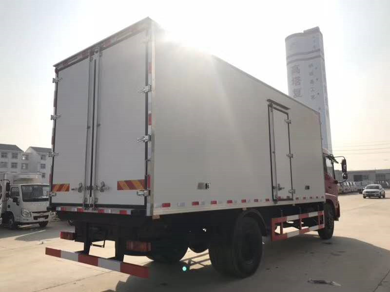 紅色東風(fēng)天錦國(guó)五6米8豬肉白條肉掛鉤冷藏車標(biāo)準(zhǔn)配置:箱體內(nèi)尺寸長(zhǎng)×寬×高為:6550×2440×2400,約38立方,廂體厚度為8厘米。冷藏廂體內(nèi)外板材采用冷藏車專用玻璃鋼,(可反射陽(yáng)光),中間夾層為聚氨酯發(fā)泡隔熱材料,(防火阻燃隔熱),千噸壓機(jī)壓制而成,配置箱體全為不銹鋼鎖件,不銹鋼包角,不銹鋼門框,帶有頂燈及防撞塊。廂體底部為鋁花紋板。我廠的冷藏保溫車保溫材料選用進(jìn)口級(jí)別XPS,吸水率≤1,導(dǎo)熱系數(shù)≤0.028W/mk,抗壓≥150Kpa,密度30~45kg/m3,使用國(guó)際上最為先進(jìn)的第五代全封閉聚氨酯板塊粘接結(jié)構(gòu),廂板表面材料有玻璃鋼、不銹鋼、鋁合金、彩鋼板等材料可供選擇,廂體成型后具有質(zhì)量輕,保溫系數(shù)高,抗沖擊力強(qiáng),無(wú)滲漏等優(yōu)點(diǎn),對(duì)大氣、水和酸、堿、鹽等介質(zhì)具有良好的耐腐蝕性和抗老化性 。通過(guò)優(yōu)化設(shè)計(jì),降低了整車質(zhì)心,增大了有效容積。經(jīng)測(cè)試,整車綜合節(jié)能率,使用壽命,比一般冷藏保溫廂高1~2倍。廂體加裝5排肉鉤導(dǎo)軌,底盤加裝鋁合金通風(fēng)槽。