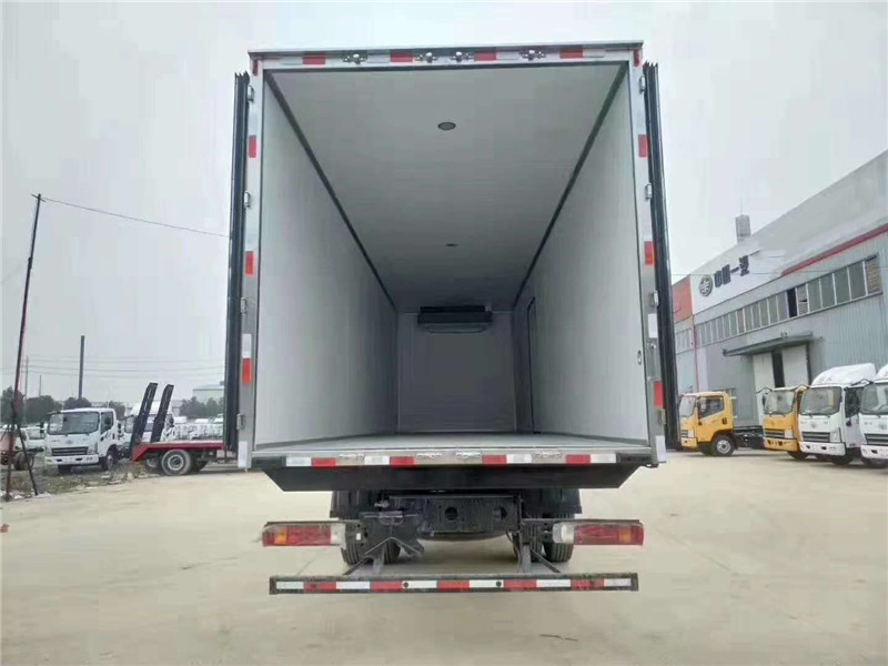 標(biāo)準(zhǔn)配置:箱體尺寸長(zhǎng)×寬×高為:9580×2450×2500,約58.6立方,廂體厚度為8厘米。冷藏廂體內(nèi)外板材采用冷藏車(chē)專(zhuān)用玻璃鋼,(可反射陽(yáng)光),中間夾層為聚氨酯發(fā)泡隔熱材料,(防火阻燃隔熱),千噸壓機(jī)壓制而成,配置箱體全為不銹鋼鎖件,不銹鋼包角,不銹鋼門(mén)框,帶有頂燈及防撞塊。廂體底部為鋁花紋板。我廠的冷藏保溫車(chē)保溫材料選用進(jìn)口級(jí)別XPS,吸水率≤1,導(dǎo)熱系數(shù)≤0.028W/mk,抗壓≥150Kpa,密度30~45kg/m3,使用國(guó)際上最為先進(jìn)的第五代全封閉聚氨酯板塊粘接結(jié)構(gòu),廂板表面材料有玻璃鋼、不銹鋼、鋁合金、彩鋼板等材料可供選擇,廂體成型后具有質(zhì)量輕,保溫系數(shù)高,抗沖擊力強(qiáng),無(wú)滲漏等優(yōu)點(diǎn),對(duì)大氣、水和酸、堿、鹽等介質(zhì)具有良好的耐腐蝕性和抗老化性 。通過(guò)優(yōu)化設(shè)計(jì),降低了整車(chē)質(zhì)心,增大了有效容積。經(jīng)測(cè)試,整車(chē)綜合節(jié)能率,使用壽命,比一般冷藏保溫廂高1~2倍。廂體內(nèi)部選裝肉鉤導(dǎo)軌,地板通風(fēng)槽,溫濕度記錄儀等設(shè)備。