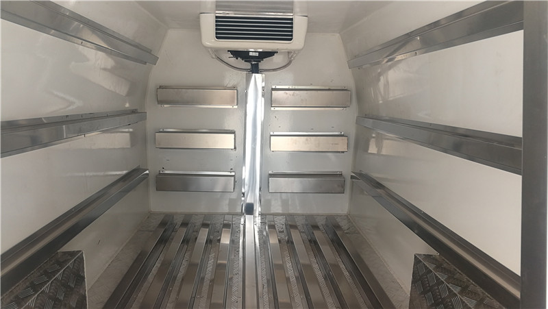 金杯快運(yùn)國六藥品面包冷藏車標(biāo)準(zhǔn)配置:內(nèi)膽圓弧式廂體。廂體內(nèi)尺寸2400x1380X1200(mm),內(nèi)板材采用冷藏車專用玻璃鋼,(可反射陽光),中間夾層為聚氨酯保溫板,配置箱體全為不銹鋼鎖件,不銹鋼包角,不銹鋼門框,帶有頂燈及防撞塊。廂板表面材料有玻璃鋼、不銹鋼、鋁合金、彩鋼板等材料可供選擇,廂體成型后具有質(zhì)量輕,保溫系數(shù)高,抗沖擊力強(qiáng),無滲漏等優(yōu)點(diǎn),對大氣、水和酸、堿、鹽等介質(zhì)具有良好的耐腐蝕性和抗老化性 。通過優(yōu)化設(shè)計(jì),降低了整車質(zhì)心,增大了有效容積。經(jīng)測試,整車綜合節(jié)能率,使用壽命,比一般冷藏保溫廂高1~2倍。廂體加裝5面通風(fēng)槽。選裝溫濕度記錄儀,豬牛肉肉鉤導(dǎo)軌等設(shè)備,制冷設(shè)備可選裝國產(chǎn)或進(jìn)口制冷機(jī)組,選裝保鮮-5度,冷凍-15度制冷機(jī)組,上藍(lán)牌,C證可開,可進(jìn)市區(qū)。