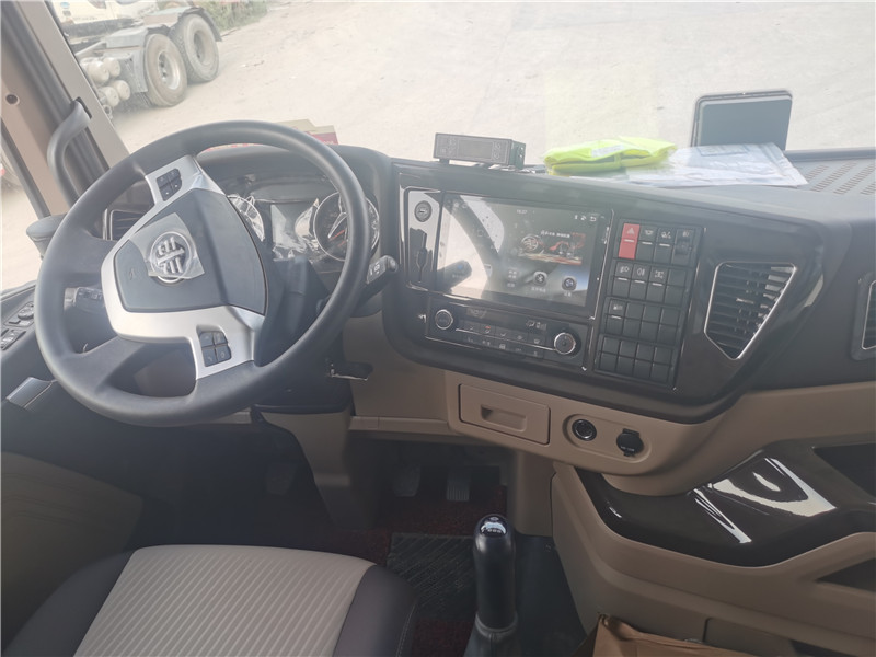 空調(diào)布置在大屏導(dǎo)航正下方,導(dǎo)航側(cè)面的多功能按鍵為駕駛室頭燈,駕駛室鎖止,大燈高度調(diào)節(jié),前后霧燈開關(guān),和油箱加熱開關(guān),電氣喇叭轉(zhuǎn)換開關(guān),軸間差速鎖和載荷開關(guān)。