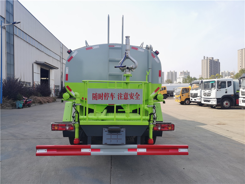 灑水車前噴頭位置較低,靠近地面,噴灑壓力較大,可用于沖洗路面;后噴頭位置較高(灑水車后噴頭一般左右各安裝一個(gè)),灑水面較寬,可用于公路施工灑水,使用后噴頭時(shí),應(yīng)將前噴管關(guān)閉;使用可調(diào)噴頭灑水時(shí),灑水寬度可根據(jù)需要調(diào)整。灑水寬度越寬,中間重疊量越少,灑水密度越均勻。