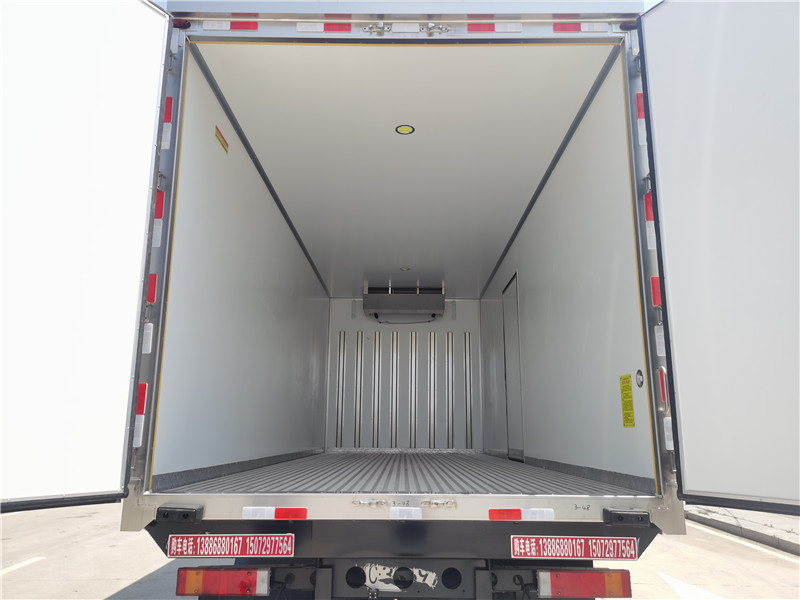 冷藏箱體內(nèi)部可根據(jù)用戶實(shí)際需求選擇加厚型地板通風(fēng)槽,運(yùn)輸豬肉的用戶可選裝肉鉤導(dǎo)軌,運(yùn)輸藥品疫苗的用戶選裝5面通風(fēng)槽,攔貨槽,溫濕度記錄儀等設(shè)備。副駕駛室邊選開單側(cè)門和雙開側(cè)門,制冷設(shè)備可選裝非獨(dú)立冷機(jī),由汽車發(fā)動(dòng)機(jī)帶動(dòng)制冷,品牌選裝鄭州凱雪990超薄冷機(jī),冷王SV1000冷機(jī),可選裝進(jìn)口獨(dú)立冷機(jī),開利S750/S850,冷王T880獨(dú)立制冷機(jī)組。最低溫度可達(dá)-18度。