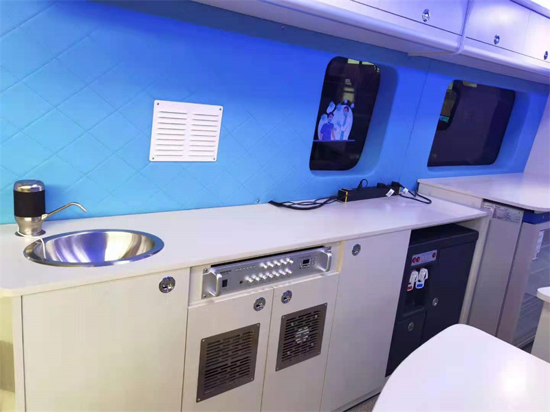 琴鍵式開關(guān),集成線束,一體化電路控制保護(hù)系統(tǒng),外接電源,繞線盤中央控制系統(tǒng),獨(dú)立電源中央控制系統(tǒng),安全方便,GPS導(dǎo)航一體機(jī) ,定制監(jiān)控系統(tǒng) 1T 存儲 各作業(yè)區(qū)獨(dú)立錄像,艙內(nèi)制作系統(tǒng),內(nèi)頂制作,高分子材料,抗菌、防腐、易清洗,醫(yī)療地板,整體塑膠,防水、防腐、耐磨、防霉、環(huán)保、防火,中隔板,復(fù)合材料,中隔斷與駕駛艙隔離密閉,醫(yī)療檢測床,軟包皮墊,登記辦公柜,復(fù)合材理化工作臺,專用材料體檢床,軟包皮墊 ,儲存柜,放置特物品,移動式旋轉(zhuǎn)座椅,可旋轉(zhuǎn)