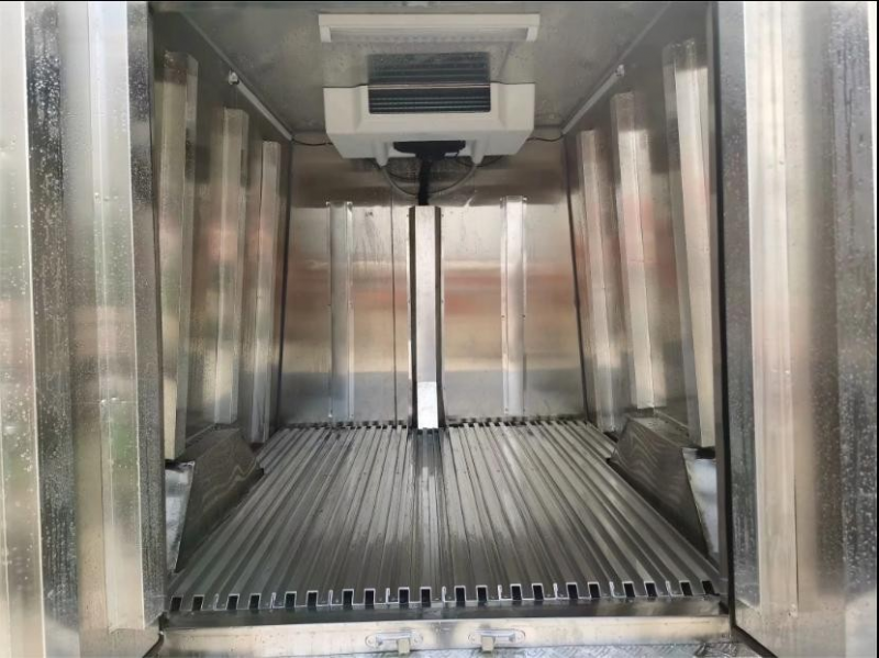 五面通風(fēng)導(dǎo)流槽,確保貨物底部,側(cè)部不與廂體完全接觸,保證整個(gè) 廂體(尤其底部)冷氣循環(huán),國產(chǎn)冷機(jī)機(jī)組(頂置) 標(biāo)配 制冷機(jī)組只有單冷功能,最低溫度可達(dá)-18℃;在配 備加熱系統(tǒng)功能條件下,冷藏箱溫度可控制在