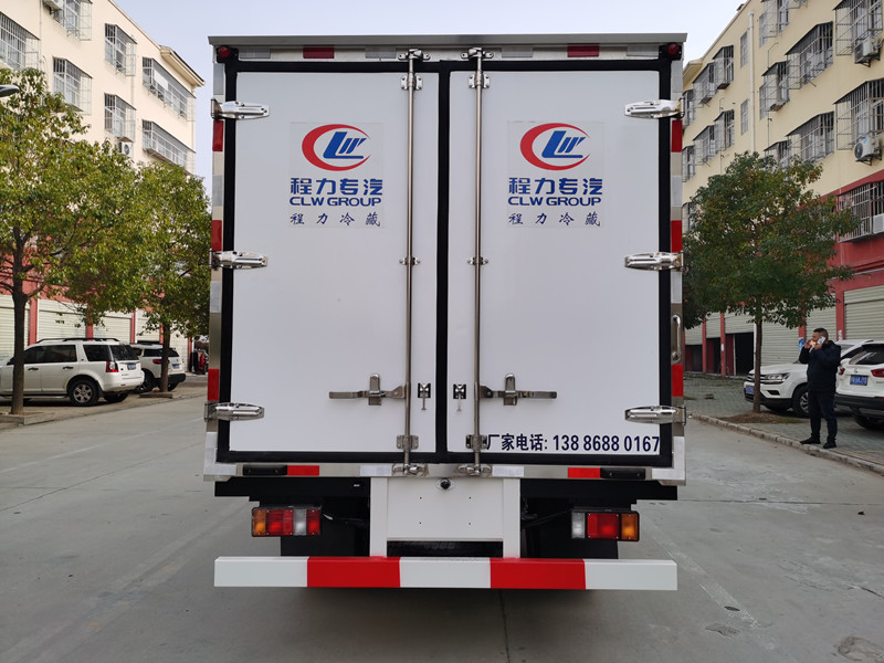 五十鈴KV100藍(lán)牌可拆卸肉鉤冷藏車副梁為Q700車用大梁鋼(副梁采用噴粉工藝,金屬表面物理化拋丸處理;結(jié)晶體皮處理;靜電粉體涂裝;熱固化200-220℃高溫烘烤;常溫冷卻。耐酸耐堿耐腐蝕);15mm厚大梁墊皮;加裝防撞膠塊;不銹鋼門鎖件,配后雙開(kāi)門。箱體內(nèi)部選裝可拆卸式肉鉤導(dǎo)軌,底板選裝通風(fēng)槽,選裝溫濕度記錄儀,選裝國(guó)產(chǎn)、進(jìn)口冷凍制冷機(jī)組,最低溫度可達(dá)-15度,可根據(jù)需求進(jìn)行調(diào)節(jié)。